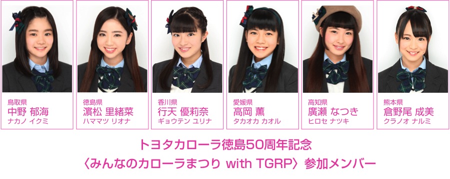 10月18日(日)にアスティとくしまの多目的ホールで開催されるトヨタカローラ徳島50周年記念イベント、〈みんなのカローラまつり with TGRP〉にAKB48チーム8が参加することになりました。当日は、2回のスペシャルライブに加えて、会場に展示されているニュルブルクリンクレースカー横での撮影会も予定しております。