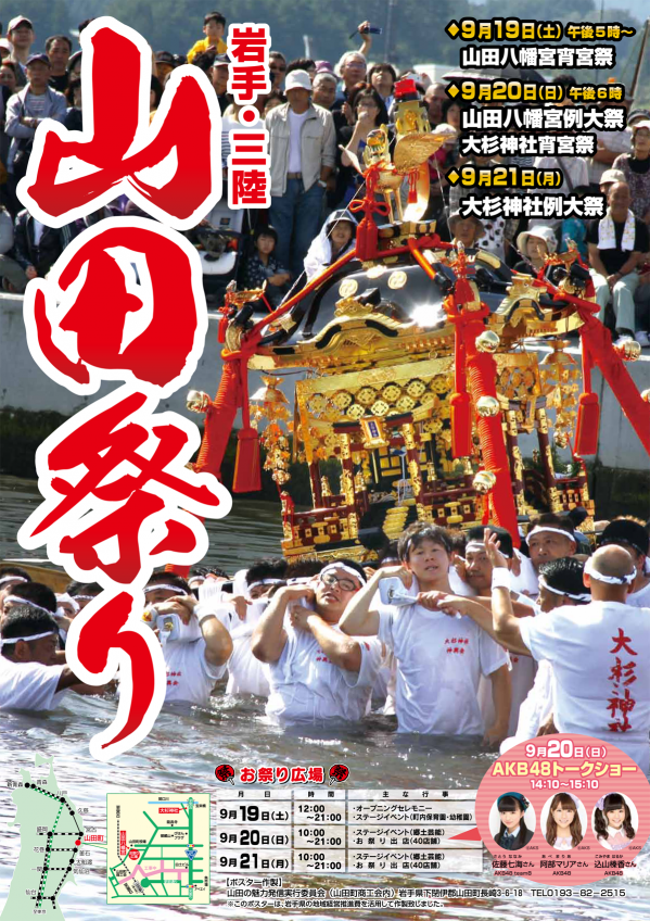 9月20日(日)、岩手県山田町で開催される〈山田祭り〉に、AKB48チーム8 岩手県代表・佐藤七海(サトウ ナナミ)が出演します! 当日は、AKB48の先輩メンバーであるチームKの阿部マリア(アベ マリア)さん、チーム4の込山榛香(コミヤマ ハルカ)さんと共に、地元の皆さんに楽しいひとときをお届けします。