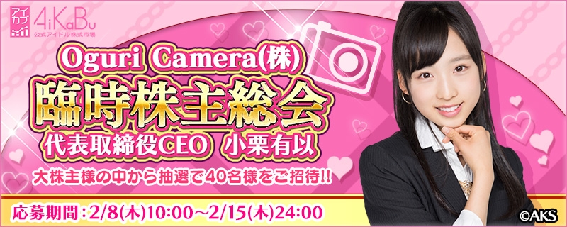 今回、小栗有以の臨時株主総会は、社長が撮った写真品評会や社長と株主さまとの対決企画など、株主の皆さんにお楽しみいただけるような、AiKaBuならではのプレミアムな内容になっています!