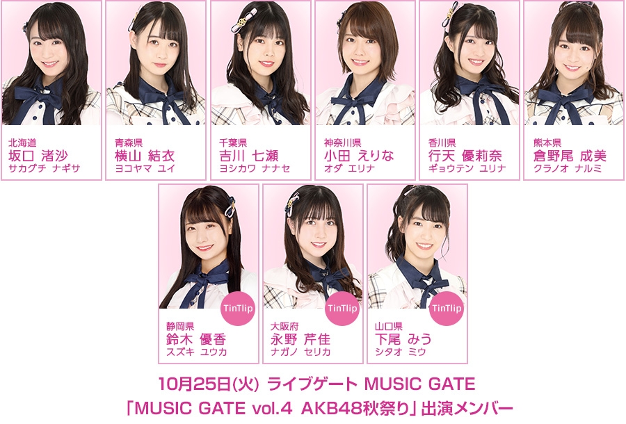 自宅で本格的なライブが楽しめるプラットフォーム"ライブゲート"にて配信されるオンラインライブ「MUSIC GATE」にチーム8とAKB48からの派生ユニットTinTlipが出演することが決定しました!