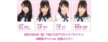 8月10日(月・祝)放送のTBS「CDTVライブ!ライブ!」4時間スペシャルに坂口渚沙、小栗有以、下尾みう、倉野尾成美が出演!