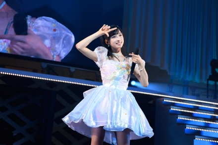 トップバッターを飾ったのは、"2万年に1人の美少女"として巷の話題にもなった小栗有以。"合戦"を思わせるような、ほら貝の音が鳴り響く中、ピンクと水色を基調としたかわいらしい衣装に身を包んだ小栗有以がステージ上に現れると、会場からは大きな歓声と共に、「おめでとう!」というソロコンサート開催を祝う声があがりました。『制服の羽根』のスローバーションからスタートし、4曲目には、応援に駆けつけた福島県代表・舞木香純(モウギ カスミ)、群馬県代表・清水麻璃亜(シミズ マリア)とともに『走れ!ペンギン』を披露。6曲目、AKB48チームBの『ワッショイB!』を小栗有以バージョンにアレンジした『ワッショイ!ゆいゆい』では、観客からの「ゆいゆいー!」という掛け声に、「自分の名前がたくさん聞けた」と大喜び。9曲目の『アボガドじゃね~し...』では、客席で観覧していたHKT48の指原莉乃さんにもアボカドを渡すというシーンがあり、あらためて会場を湧かせました。他にも、『ハート型ウイルス』や『キャンディー』、松田聖子さんの『天使のウィンク』など、指原莉乃さんもセットリスト作成に携わったという"王道アイドル"らしい楽曲が続き、かわいい"ゆいゆい"がたっぷり詰まったコンサートとなりました。