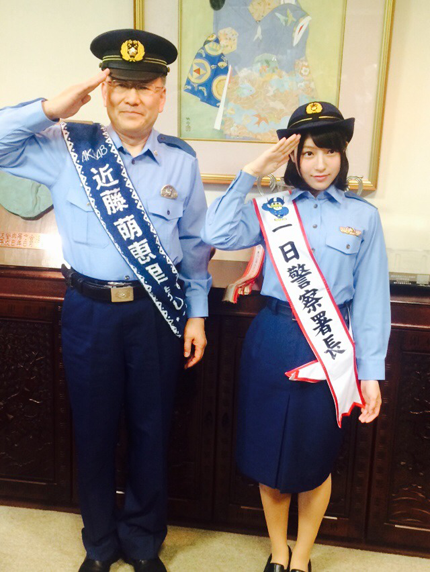 初めて警察官の制服に袖を通し、緊張の中で軽井沢署の小澤署長から委嘱状を手渡された近藤萌恵里は、「ステージで歌って、踊っているいつもの自分とは違って、変身した気分です」とコメント。署長の椅子に座らせていただいたり、署内で勤務につく署員の方々を労ったり、署長としての業務を体験させていただきました。